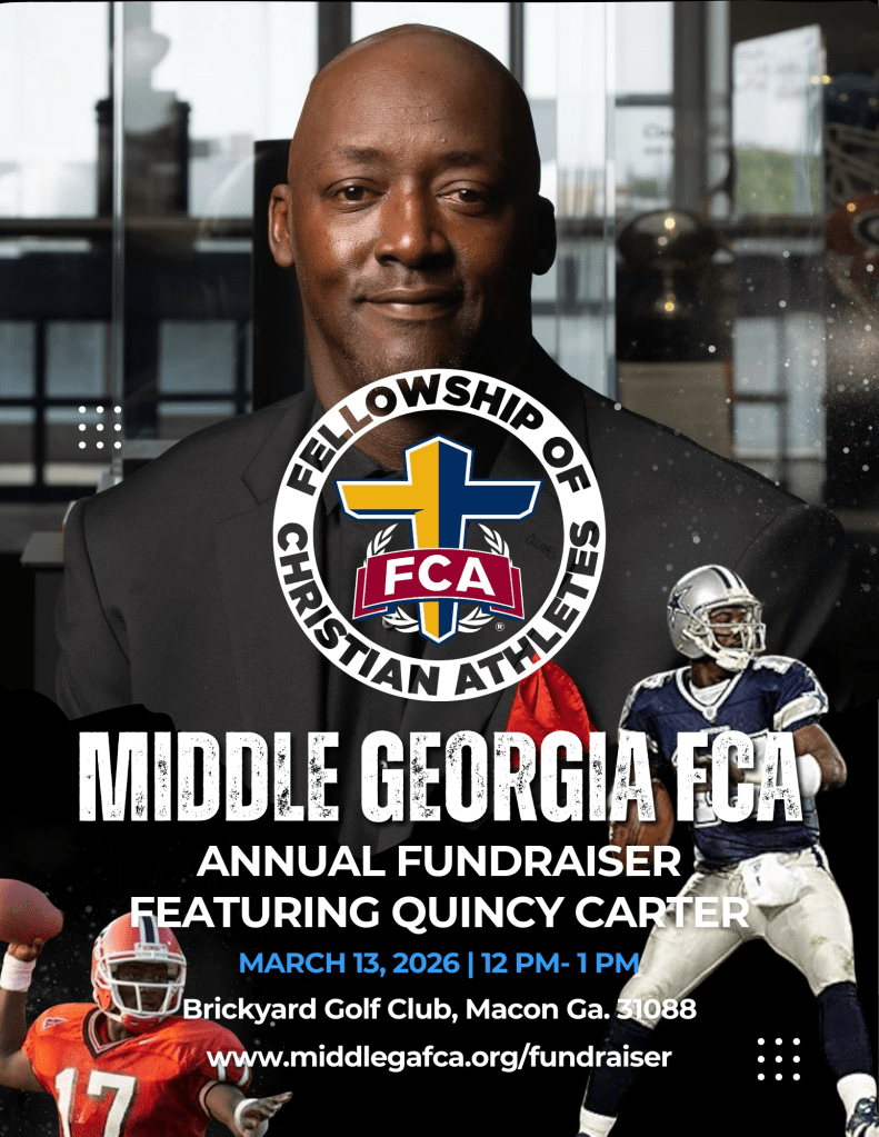 Please support the Middle Georgia FCA Annual Golf Outing and Luncheon featuring the iconic, Quincy Carter. #NFLLegend #FaithfulServant, #TenToesDown!