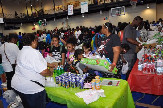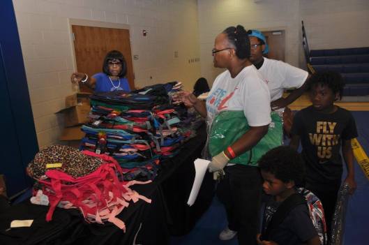 All Macon parents and youth received back packs, school supplies, goodie bags with health and nutrition items; and, food distributions from the Atlanta Community Food Bank 30,000 lb donation.  Over 1,600 needy families and their children attended the event.